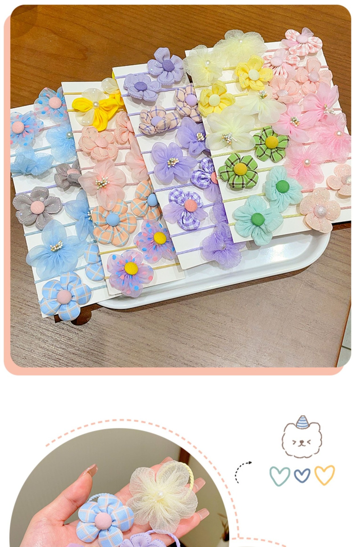 Lovely Children's Color Hair Harmless Elastic Band Hair Accessories 2023 Summer New Girls' Mesh Flower Hair Rope Headwear